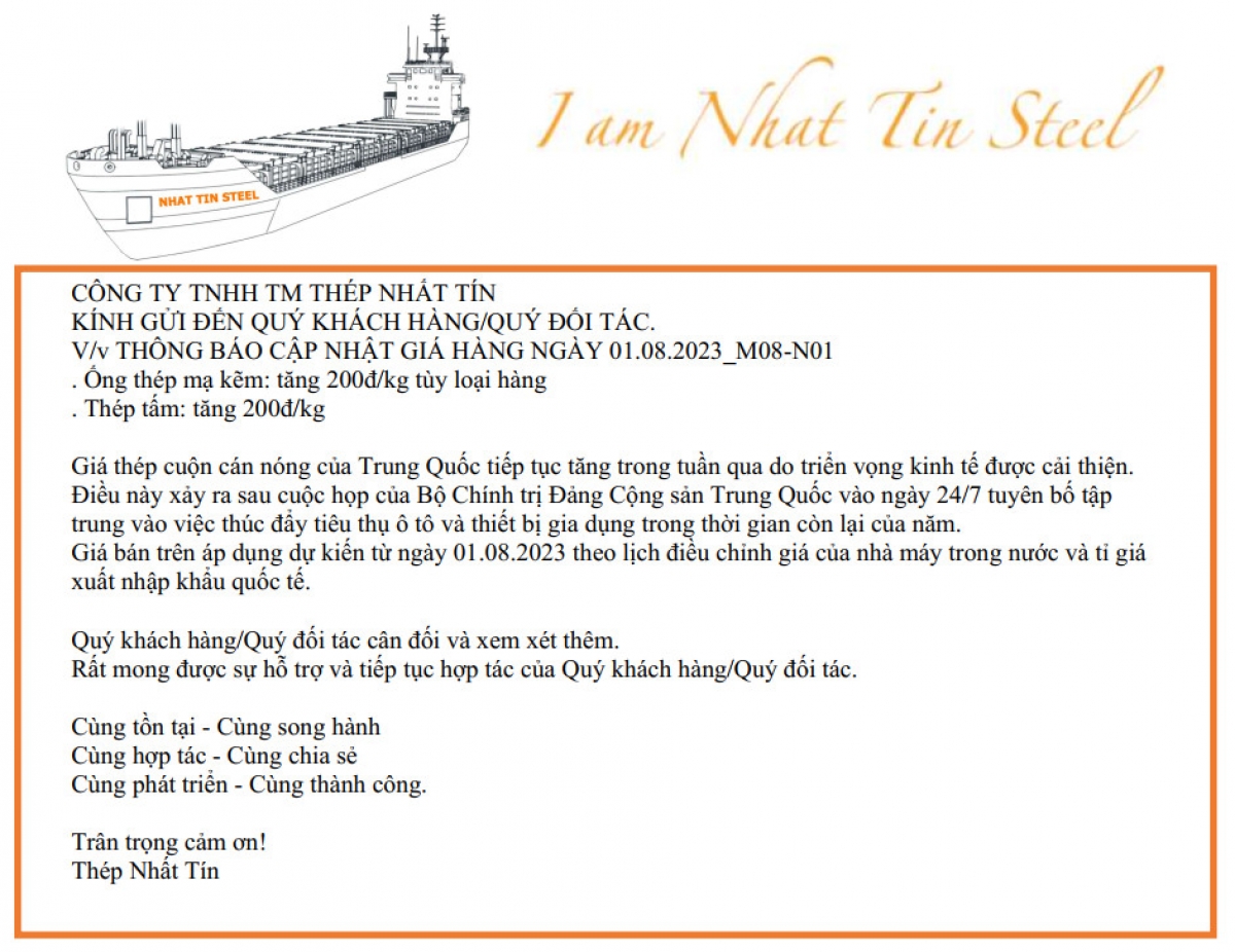 THÔNG BÁO CẬP NHẬT GIÁ HÀNG NGÀY 01.08.2023_M08-N01